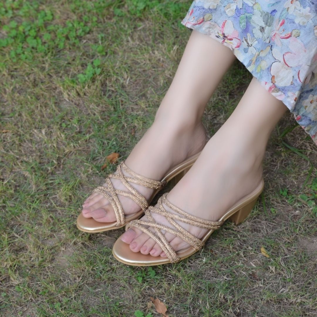 The perfect addition to your festive wardrobe! With 2 inch block heels and rhinestone embellished strips, these shoes offer both style and comfort. They're a must-have for the upcoming season - trust us, your feet will thank you.